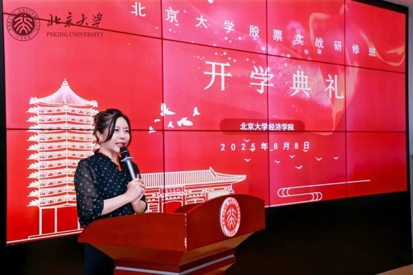 北京大学经济学院EDP中心执行主任王娣出席开学典礼并致辞。王娣在致辞中欢迎股票实战班同学们的到来,并谈到经济学院作为百年老院始终以经世济民为初心,依托经济学院的学科优势,持续升级课程体系,让投资更科学。